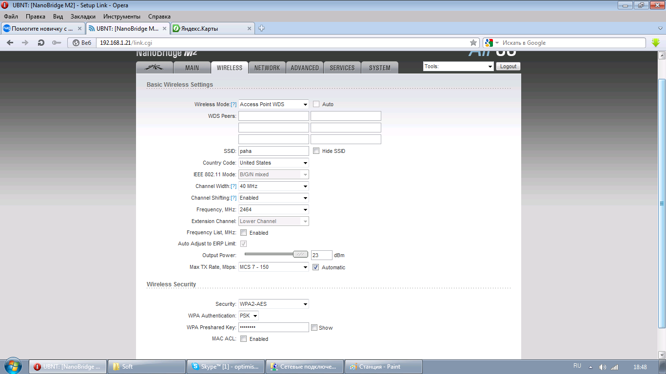 ChargeSet Posted February 13, 2014 Posted February 13, 2014 обновите пошивку, дайте скрины раздела wireless Кроме того, суда по картинке оборудование считает что работает на дистанции 1,2 км. Что-то у вас явно не так с монтажом Вставить ник Quote