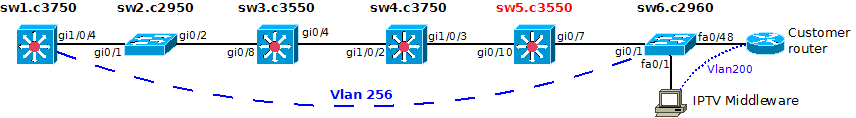 s.lobanov Posted March 10, 2014 Проведите такую диагностику: Прокиньте ещё один влан с мультикастом от sw1 к sw6 и посмотрите что будет в нём. Если тоже самое, то выключайте igmp-snooping на sw5 в новом влане и если всё станет нормально, то значит проблема именно в igmp-snooping именно на sw5 Share this post Link to post Share on other sites More sharing options...