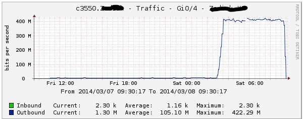 a-zazell Posted March 8, 2014 (edited) 2014-08-10 Решено, убрал в конфиге все про MVR. Здравствуйте, столкнулся с проблемой: со временем кол-во IPGM групп на 3550 становится настолько большим (последний раз 164), что multicast трафик просто забивает канал, идут потери. Во вложении схема подачи IPTV на жил. комплекс. В основании ЖК поставили Cisco WS-C3550-12G 12.2(52)SE (SW5 на схеме). От него на каждом гигабите висит cisco WS-C2960-48TC-S (SW6 на схеме) к которой подключены клиенты. На каждого клиента установлен Mikrotik RB750 ROS 5.26 с транковым uplink'ом, далее с 2960 по несколько портов выделено на жил площади абонентов. Подозрение в неправильной работе IGMP snooping упало на 3550 (Sw5) потому, что в момент, когда в выводе sw5# show ip igmp snooping groups vlan 256 показывает около 100 групп с одного порта sw6, в этот момент на sw6 показывает 5-10 групп. Нашел в сети похожую схему, где с c4900m SVI pim passive > c3550-12G > Customer и такой проблемы не наблюдается, залил IOS 12.2(52)SE на SW5 - без толка. В дебаге на SW5 Leave вижу, интерфейсы удаляются из подписки: #debug ip igmp snooping group Mar 8 09:32:12: IGMPSN: group: Leave for group 225.100.100.98 received on Vlan 256, port Gi0/4 Mar 8 09:32:12: IGMPSN: group: Leave for group 225.100.100.98 received on Vlan 256, port Gi0/5 Mar 8 09:32:13: IGMPSN: group: Deleting leave port on port Gi0/4, for 225.100.100.98 on Vlan 256 Mar 8 09:32:13: IGMPSN: group: Deleting leave port on port Gi0/5, for 225.100.100.98 on Vlan 256 Mar 8 09:32:14: IGMPSN: group: Leave for group 225.100.100.98 received on Vlan 256, port Gi0/7 Mar 8 09:32:15: IGMPSN: group: Deleting leave port on port Gi0/7, for 225.100.100.98 on Vlan 256 На графиках интерфейсов во вложении видно, как растет трафик. Особенно интересно на gi0/4 в 2:40 ночи попер резко трафик. По логам там порт клиента поднялся в 2:16. В итоге приходится на SW5 делать no ip igmp snooping vlan 256 и обратно. Кто подскажет где косяк зарылся? Ниже некоторые конфиги. RB750 > routing igmp-proxy export # mar/08/2014 10:27:46 by RouterOS 5.26 # /routing igmp-proxy set query-interval=2m5s query-response-interval=10s quick-leave=no /routing igmp-proxy interface add alternative-subnets=0.0.0.0/0 disabled=no interface=ether1-gateway \ threshold=1 upstream=yes add alternative-subnets="" disabled=no interface=ether2-master-local \ threshold=1 upstream=no SW1 (cisco WS-C3750-48TS 12.2(46)SE) ! interface Vlan256 ip address 10.10.234.1 255.255.255.0 ip pim passive end #show ip igmp snooping vlan 256 detail Global IGMP Snooping configuration: ------------------------------------------- IGMP snooping : Enabled IGMPv3 snooping (minimal) : Enabled Report suppression : Enabled TCN solicit query : Disabled TCN flood query count : 2 Robustness variable : 2 Last member query count : 2 Last member query interval : 1000 Vlan 256: -------- IGMP snooping : Enabled IGMPv2 immediate leave : Disabled Multicast router learning mode : pim-dvmrp CGMP interoperability mode : IGMP_ONLY Robustness variable : 2 Last member query count : 2 Last member query interval : 1000 Topology change : No SW5 (Cisco WS-C3550-12G 12.2(52)SE) #show ip igmp snooping vlan 256 detail Global IGMP Snooping configuration: ----------------------------------- IGMP snooping : Enabled IGMPv3 snooping (minimal) : Enabled Report suppression : Enabled TCN solicit query : Disabled TCN flood query count : 2 Last Member Query Interval : 1000 Vlan 256: -------- IGMP snooping : Enabled IGMPv2 immediate leave : Disabled Explicit host tracking : Enabled Multicast router learning mode : pim-dvmrp Last Member Query Interval : 1000 Source only learning age timer : 10 CGMP interoperability mode : IGMP_ONLY Topology change : No SW6 (cisco WS-C2960-48TC-S 12.2(50)SE5) #show ip igmp snooping vlan 256 detail Global IGMP Snooping configuration: ------------------------------------------- IGMP snooping : Enabled IGMPv3 snooping (minimal) : Enabled Report suppression : Enabled TCN solicit query : Disabled TCN flood query count : 2 Robustness variable : 2 Last member query count : 2 Last member query interval : 1000 Vlan 256: -------- IGMP snooping : Enabled IGMPv2 immediate leave : Disabled Multicast router learning mode : pim-dvmrp CGMP interoperability mode : IGMP_ONLY Robustness variable : 2 Last member query count : 2 Last member query interval : 1000 Topology change : No Edited March 10, 2014 by a-zazell Share this post Link to post Share on other sites More sharing options...