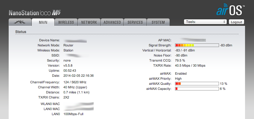 Халли Posted June 10, 2014 Posted June 10, 2014 Доброго дня. Подскажите пожалуйста, что можно предпринять для улучшения качества сигнала NanoStation Loco M5, с учетом того, что я - клиент и доступа к провайдерской антенне у меня нет. Настройки и параметры моей антенны таковы: Transmit CCQ - незначительно изменяется TX/RX Rate - скачет от 0 до 30 (в обе стороны) airMAX Quality - падает до 0 airMAX Capacity - падает до 0 Вставить ник Quote