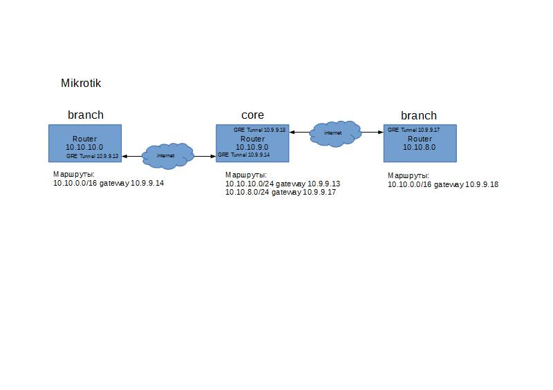 NikAlexAn Posted June 19, 2014 Posted June 19, 2014 ping c 10.10.10.1 на 10.10.8.1 и наоборот c 10.10.8.1 на 10.10.10.1 - это адреса самих роутеров. Умирают пакеты соответственно на шлюзах 10.9.9.14 и 10.9.9.18 т.е. все верно - как бы получается что 10.9.9.14 не знает маршрут до 10.9.9.17? но как добавить явную маршрутизацию между этими подсетями? 10.1 и 8.1 это случайно не адреса самих маршрутизаторов? Если это адреса маршрутизаторов то в пинге вы source адрес указывали? А между ПК в разных узлах пинг пробовали? Маршруты - либо поменяйте на удалённых узлах маршруты на 10.0.0.0/8 либо добавьте маршруты на удалённые сети 9.12/30 и 9.16/30 на тех узлах где таких маршрутов нет, шлюзы как для маршрутов 10.10.0.0/16. На всех маршрутизаторах сделать маршрут 10.0.0.0/8 в null, между маршрутизаторами поднять OSPF/ISIS/BGP/Whatever. Вручную маршруты не вписывать. А со статикой что ли не заработает? У меня туннель ip-ip между киской и микротиком и со статикой спокойно работает. Вставить ник Quote