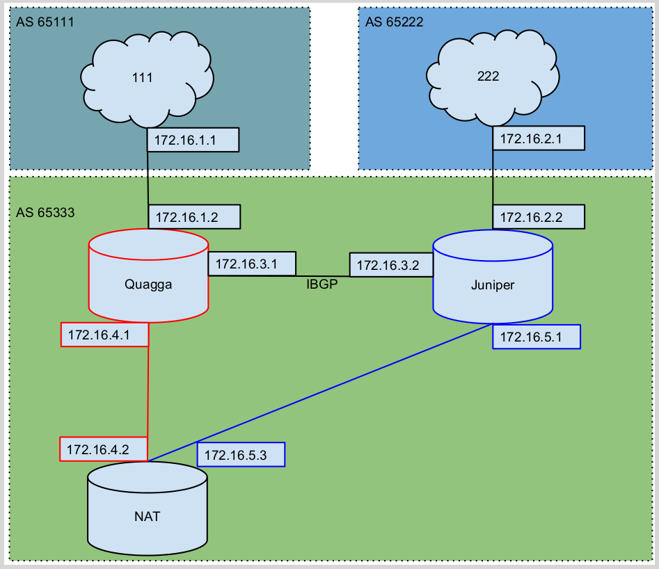 alexchip Posted August 15, 2014 Собрали тестовый стенд где бордеры объединены по IBGP, а на NAT'ы и Extrime сливается DefaultGW с каждого бордера. В итоге так как: Предпочтение отдается путям eBGP, а не путям iBGP. Только лучший путь помещается в таблицу маршрутизации и анонсируется BGP-соседям. получается что трафик до одного и того же хоста будет уходить через разных аплинков (в зависимости от какого бордера NAT или Extreme выберет default). Использовать "сервые" AS для соединения бордеров по EBGP тоже не катит: будет увеличиваться путь. Как синхронизировать маршруты 2-х BGP серверов одной AS? Или как отменить удлинение маршрутов между серыми AS если AS565333 разделить на две AS? Share this post Link to post Share on other sites More sharing options...
