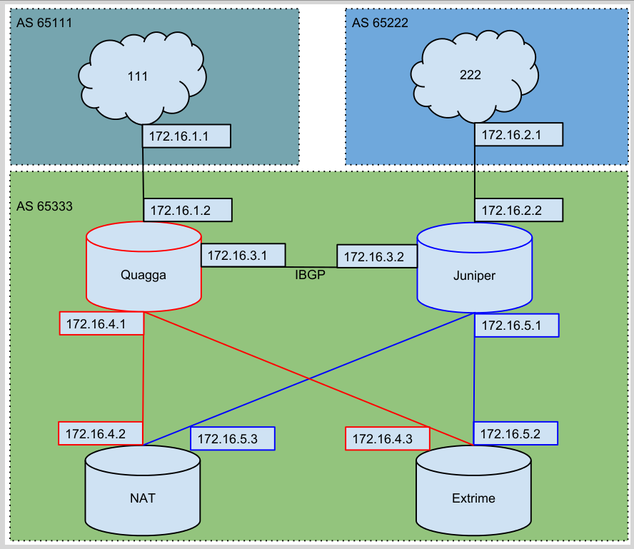 g3fox Posted August 11, 2014 Может вообще на экстриме сделать статику через виртуальный адрес, а на бордерах сделать vrrp ? Между бордерами также сделать и ibgp и рулить пирами/аплинками исключительно на бордерах. Share this post Link to post Share on other sites More sharing options...