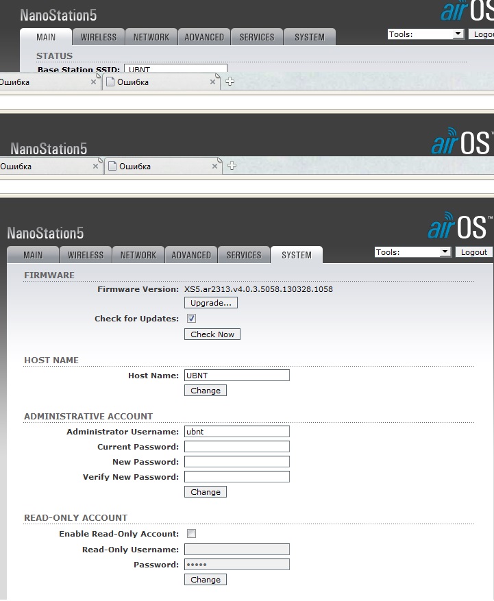gamerzz Posted August 28, 2014 Author Posted August 28, 2014 итак - антенна у товарища в AP e у меня в стейшен. Сегодня сидел смотрел у товарища - может у него что слетело - нифига все работает. Зашел на его антенну выпас вот что - в аттаче: 1 скрин - версия прошивки. 2 скрин - настройки антенны у товарища, которая в АР 3 скрин - страничка с статистикой. Напрягло следующее - пришел к товарищу позвонил домой попросил включить антенну дома. До включения активности пакетов в разделе Ван статистики не было вообще, после появились но активно тикали только трансмиттед, ресивед те 12 что есть это что на тикало за 15 минут. И по прежнему не могу зайти на вторую антенну со стороны первой хотя соединение между ними есть, на клиентской видно что она эту точку видит и подключается к ней. Вставить ник Quote