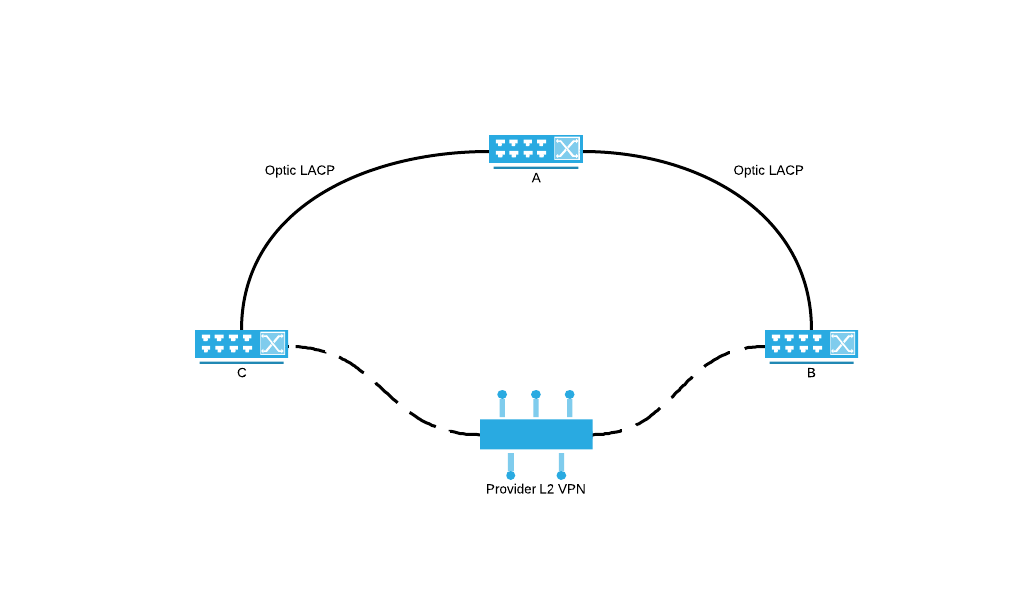 BakaBaka Posted September 2, 2014 Posted September 2, 2014 Привет. Посоветуйте, пожалуйста, как можно организовать резервный канал в такой схеме: Между площадками A и B, A и C лежит оптика. Между B и C арендован L2 канал от провайдера, в котором он фильтрует bpdu. Так что STP и прочие служебные протоколы не работают. Нужно автоматически переключаться на канал B-C когда ложится A-B или A-C. Вставить ник Quote