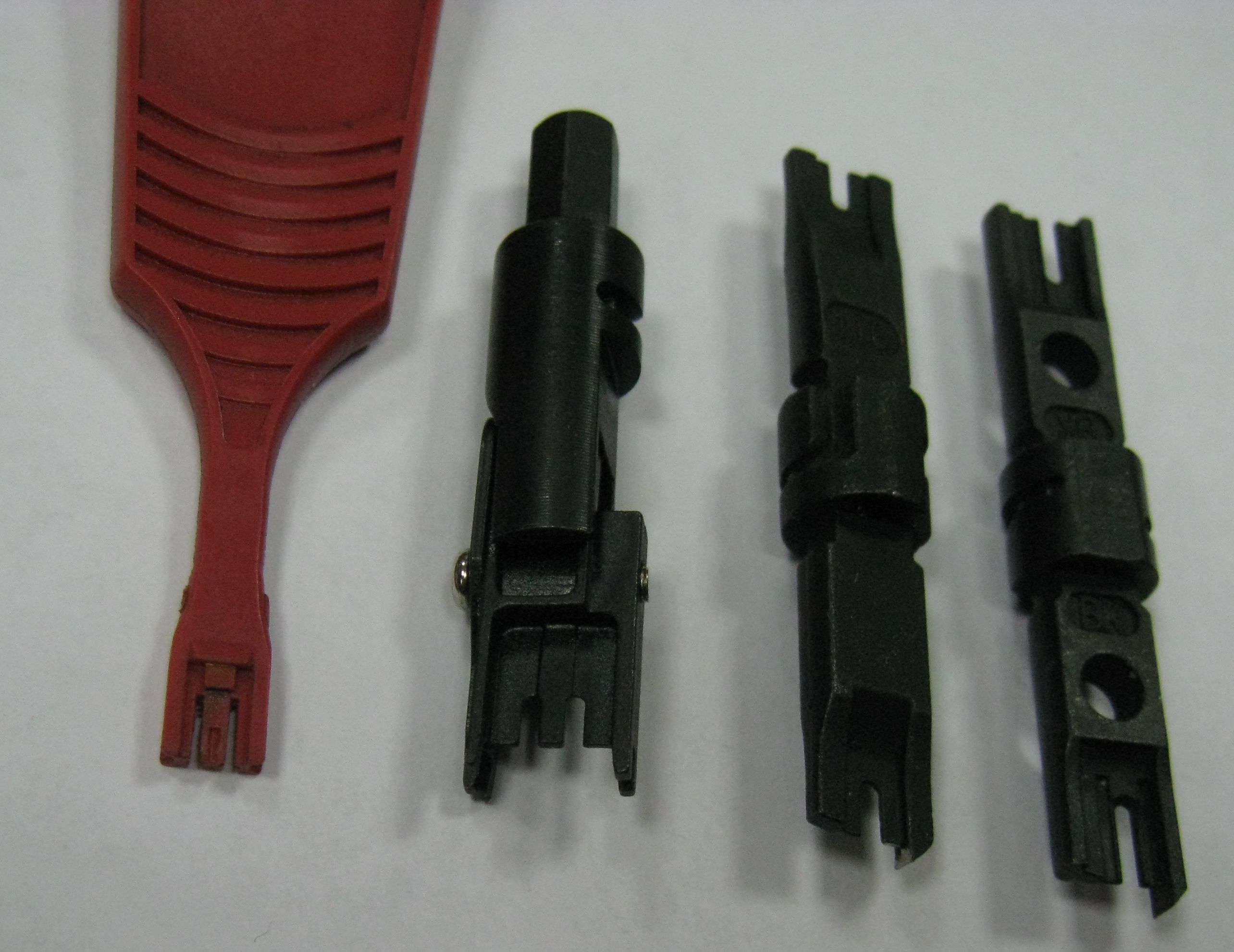 pukoid Posted September 4, 2014 Posted September 4, 2014 Есть такой вот кросс. Внутри странные плинты. Как сказали люди, причастные к покупке, к каждым нескольким плинтам в комплекте прилагалось по пластмассовой ширялке. В ходе лютой 3 из 4 ширялок поломались, осталась последняя. Я так и не смог идентифицировать и найти инструмент. В контактах плинтов внутренний край острый - провод обрезается об контакт при забивке забавной пластмассовой ширялкой. Сфотал рядом с битами крон, 110, бикс: Где б найти такую биту про запас? Вставить ник Quote