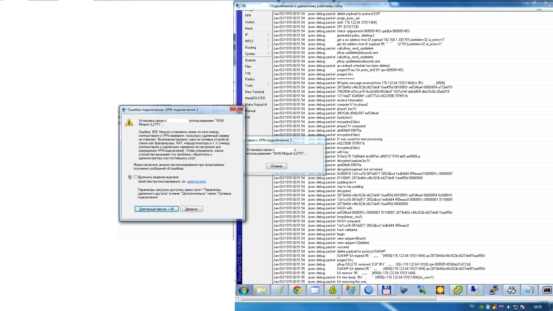 eugenesch Posted September 9, 2014 Posted September 9, 2014 (edited) Отрубить для начала шифрование. Собственно вот Вкл сервер /interface l2tp-server server set default-profile=default enabled=yes Добавили учетку /ppp secret add name=ppp1 password=qqqqqqqq profile=default remote-address=10.1.2.2 local-address=10.1.2.1 service=l2tp Все проверять можно. А вот потом уже наворачивать(если нужно). а, ну да. файрвол. /ip firewall filter add place-before=0 chain=input comment="Allow to local L2TP server" dst-port=1701 protocol=udp Edited September 9, 2014 by eugenesch Вставить ник Quote