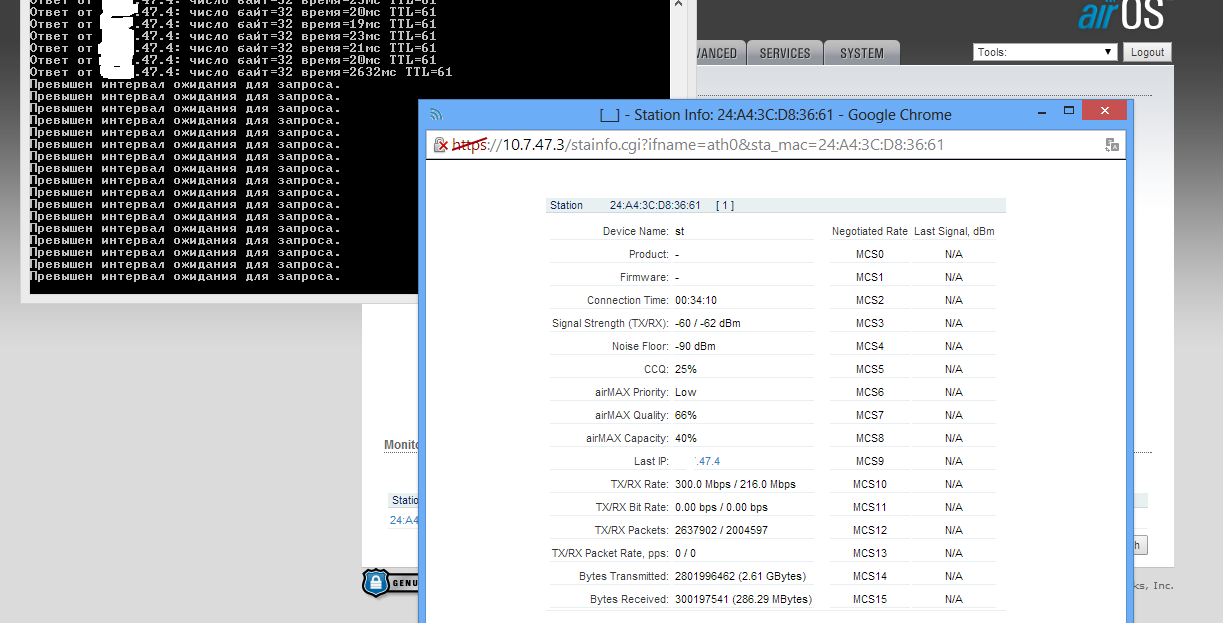 mirex Posted September 6, 2014 Author Posted September 6, 2014 (edited) Что делать с Data rate module? тоже подергать. Попробовать денек в alternative data rate поработать, денек в стандартном. Airmax не надо запускать, это не airview, это собственный протокол ubnt, включается на АР. Так же попробуйте день с ним день без него. И, кстати, настройки wireless и advanced покажите тоже Попутал с airmax, имелось в виду airview. Без airmax'a пинги вырастают ещё сильнее. В общем буду пробовать. Data rate менять на клиенте или базе? Заметил, что если на AP смотреть в sation list, то во время того когда дропаются пакеты TX/RX становится допустим 270/30, 270/16. И вообще он скачет очень сильно, раньше не было такого. Edited September 6, 2014 by mirex Вставить ник Quote