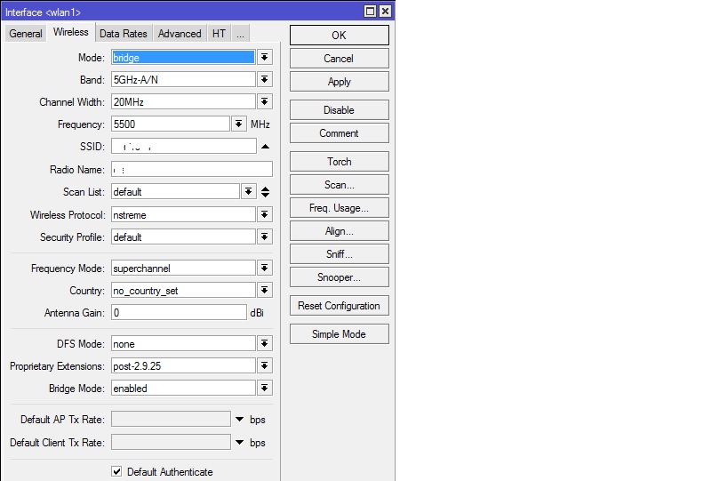 ChargeSet Posted September 16, 2014 Posted September 16, 2014 Если в настройках вместо суперченела поставить мануал, то частоту 5500 я уже не могу выставить /interface wireless set wlan1 tx-power-mode=all-rates-fixed tx-power=%Tx в dbm% на суперчанеле Вставить ник Quote