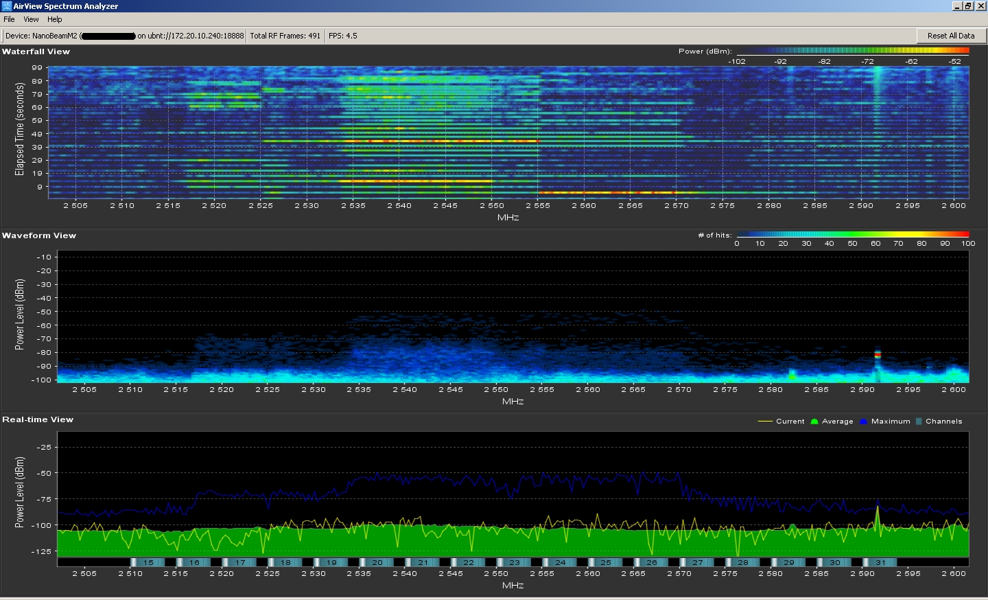 tofu Posted September 26, 2014 Author Posted September 26, 2014 В данный момент начались проблемы с БС1 (Нанобим на 5.5.10 rc3) все клиенты нанобимы, просто перестали пинговаться, по веб доступа нету. Вот скрин, спектрограмма и лог. Sep 23 16:50:13 system: Start Sep 23 16:50:13 syslogd started: BusyBox v1.11.2 Sep 23 16:50:13 wireless: ath0 MLME-AUTH.indication(addr=04:18:d6:0c:90:b7) Sep 23 16:50:13 wireless: ath0 Registered node:04:18:D6:0C:90:B7 Sep 23 16:50:13 FileSystem: Start check... Sep 24 10:27:25 FileSystem: End check. Sep 24 10:28:53 init: reloading /etc/inittab Sep 24 10:28:53 system: Stop Sep 24 10:28:53 wireless: ath0 STA-TRAFFIC-STAT mac=24:a4:3c:92:76:05 rx_packets=41 rx_bytes=3301 tx_packets=308 tx_bytes=30175 Sep 24 10:28:53 wireless: ath0 Expired node:24:A4:3C:92:76:05 Sep 24 10:28:53 wireless: ath0 STA-TRAFFIC-STAT mac=04:18:d6:0c:93:cc rx_packets=101 rx_bytes=11700 tx_packets=396 tx_bytes=55156 Sep 24 10:28:53 wireless: ath0 Expired node:04:18:D6:0C:93:CC Sep 24 10:28:53 wireless: ath0 STA-TRAFFIC-STAT mac=04:18:d6:0c:90:b7 rx_packets=67 rx_bytes=6619 tx_packets=312 tx_bytes=30581 Sep 24 10:28:53 wireless: ath0 Expired node:04:18:D6:0C:90:B7 Sep 24 10:28:54 init: process '/sbin/ntpclient -n -s -c 0 -l -h 193.109.70.10' (pid 546) exited. Scheduling for restart. Sep 24 10:28:54 init: process '/bin/lighttpd -D -f /etc/lighttpd.conf' (pid 547) exited. Scheduling for restart. Sep 24 10:28:56 syslogd exiting Sep 24 10:29:05 system: Start Sep 24 10:29:05 syslogd started: BusyBox v1.11.2 Sep 24 10:29:05 wireless: ath0 MLME-AUTH.indication(addr=04:18:d6:0c:90:b7) Sep 24 10:29:05 wireless: ath0 Registered node:04:18:D6:0C:90:B7 Sep 24 10:34:50 wireless: ath0 STA-TRAFFIC-STAT mac=04:18:d6:0c:90:b7 rx_packets=3334 rx_bytes=614036 tx_packets=6689 tx_bytes=7710488 Sep 24 10:34:50 wireless: ath0 Expired node:04:18:D6:0C:90:B7 Sep 24 10:35:37 wireless: ath0 STA-TRAFFIC-STAT mac=24:a4:3c:92:76:05 rx_packets=3068 rx_bytes=490229 tx_packets=6405 tx_bytes=7536851 Sep 24 10:35:37 wireless: ath0 Expired node:24:A4:3C:92:76:05 Sep 24 10:36:00 wireless: ath0 MLME-AUTH.indication(addr=04:18:d6:0c:90:b7) Sep 24 10:36:00 wireless: ath0 Registered node:04:18:D6:0C:90:B7 Sep 24 10:36:05 wireless: ath0 STA-TRAFFIC-STAT mac=04:18:d6:0c:93:cc rx_packets=3099 rx_bytes=491857 tx_packets=6520 tx_bytes=7572583 Sep 24 10:36:05 wireless: ath0 Expired node:04:18:D6:0C:93:CC Sep 24 10:36:48 wireless: ath0 MLME-AUTH.indication(addr=24:a4:3c:92:76:05) Sep 24 10:36:48 wireless: ath0 Registered node:24:A4:3C:92:76:05 Sep 24 10:37:16 wireless: ath0 MLME-AUTH.indication(addr=04:18:d6:0c:93:cc) Sep 24 10:37:16 wireless: ath0 Registered node:04:18:D6:0C:93:CC Sep 25 10:14:03 init: reloading /etc/inittab Sep 25 10:14:03 system: Stop Sep 25 10:14:04 wireless: ath0 STA-TRAFFIC-STAT mac=04:18:d6:0c:90:b7 rx_packets=2781165 rx_bytes=331075169 tx_packets=4213228 tx_bytes=5221375868 Sep 25 10:14:04 wireless: ath0 Expired node:04:18:D6:0C:90:B7 Sep 25 10:14:04 wireless: ath0 STA-TRAFFIC-STAT mac=24:a4:3c:92:76:05 rx_packets=6126706 rx_bytes=4483341731 tx_packets=6772799 tx_bytes=5936136948 Sep 25 10:14:04 wireless: ath0 Expired node:24:A4:3C:92:76:05 Sep 25 10:14:04 wireless: ath0 STA-TRAFFIC-STAT mac=04:18:d6:0c:93:cc rx_packets=1246773 rx_bytes=104737086 tx_packets=2695011 tx_bytes=3492184192 Sep 25 10:14:04 wireless: ath0 Expired node:04:18:D6:0C:93:CC Sep 25 10:14:04 init: process '/sbin/ntpclient -n -s -c 0 -l -h 193.109.70.10' (pid 895) exited. Scheduling for restart. Sep 25 10:14:04 init: process '/bin/lighttpd -D -f /etc/lighttpd.conf' (pid 896) exited. Scheduling for restart. Sep 25 10:14:06 syslogd exiting Sep 25 10:14:15 system: Start Sep 25 10:14:16 syslogd started: BusyBox v1.11.2 Sep 25 10:14:16 wireless: ath0 MLME-AUTH.indication(addr=04:18:d6:0c:90:b7) Sep 25 10:14:16 wireless: ath0 Registered node:04:18:D6:0C:90:B7 Sep 26 13:49:48 wireless: ath0 MLME-AUTH.indication(addr=04:18:d6:0c:90:b7) Sep 26 13:49:48 wireless: ath0 STA-TRAFFIC-STAT mac=04:18:d6:0c:90:b7 rx_packets=3232599 rx_bytes=451059968 tx_packets=4873919 tx_bytes=6236442922 Sep 26 13:49:48 wireless: ath0 Expired node:04:18:D6:0C:90:B7 Sep 26 13:49:48 wireless: ath0 Registered node:04:18:D6:0C:90:B7 После того как запустил Airview, снял спектр и закрыл его, все абонки подключились и стали доступны. Вот как так? Вставить ник Quote