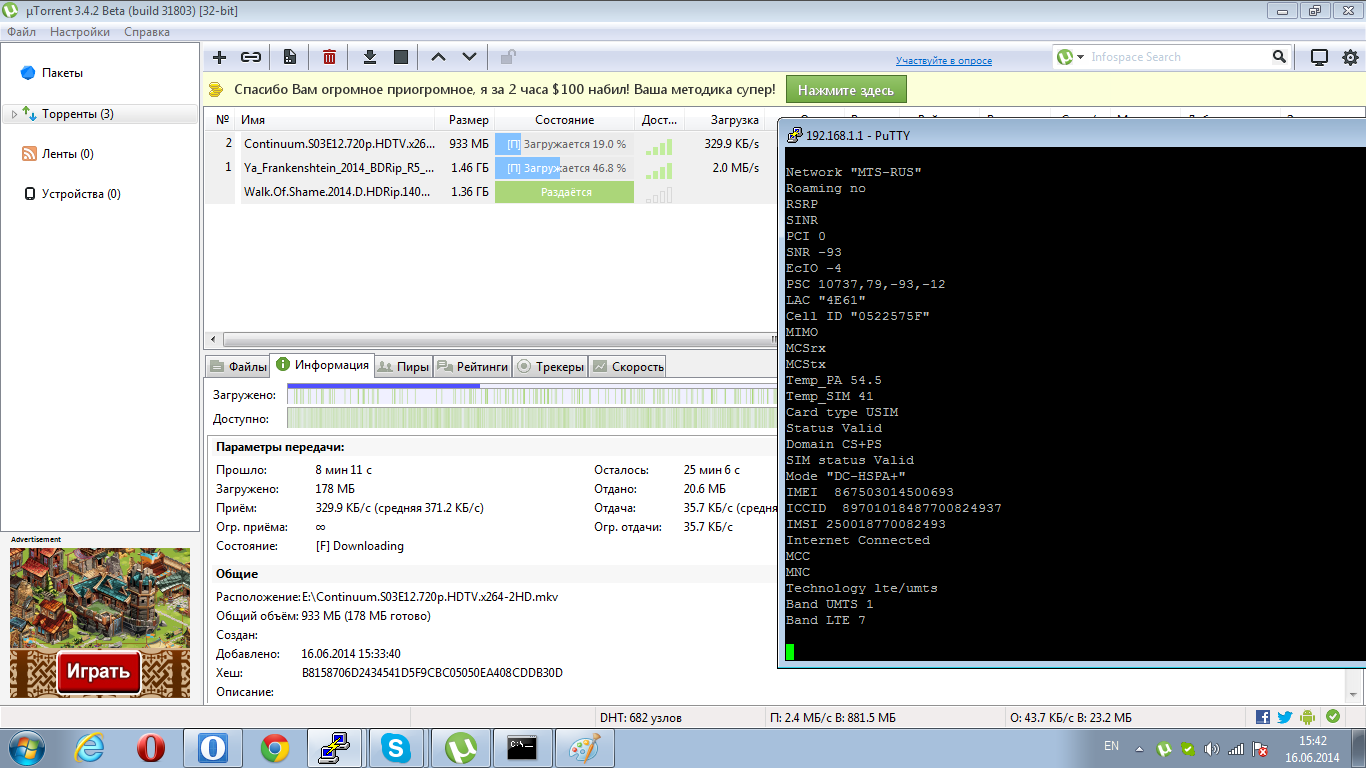 diver52 Posted October 28, 2014 Author Posted October 28, 2014 (edited) Ну если так и есть на самом деле, то придется объяснять клиентам, которым нужна установка инета, что есть бюджетное решение - например, уровень сигнала где-то в пределах -100...-80 дБ и скорость будет средняя, или ставить высокую мачту с хорошей антенной и получать более высокие скорости - но это уже дорого. Хотя уже из опыта большинству загородных жителей хватает 3...5 мбит/сек вход и 1 мбит/сек выход. Многие хотят просто подешевле даже в ущерб скорости. Стабильность практически во всех случаях хорошая и ничего не отваливается и не рвется. Было только пару инцидентов с мегафоном - это полное отсутствие сигнала 3G и 4G в течение 3-х дней - велись ремонтные работы на БС, а также были постоянные разрывы через 3-5 мин при уровне сигнала -90 дБ. Сменил на Билайн - все стало отлично. Как-то после этого перестал уважать Мегафон. А вот с Билайном и МТС все всегда отлично. Да и нет там ограничения на дальность БС, как у мегафона. По крайней мере, гораздо реже это встретишь. Хотя на практике были случаи, когда до БС всего 1 км в прямой видимости. И что же имеем? Днем скорость 10...12 мбит/сек, вечером 1...2 мбит сек и это при уровне сигнала -65 дБ. Хотя исходящая скорость и днем, и вечером стабильна и составляет где-то 2...3 мбит/сек. Edited October 28, 2014 by diver52 Вставить ник Quote