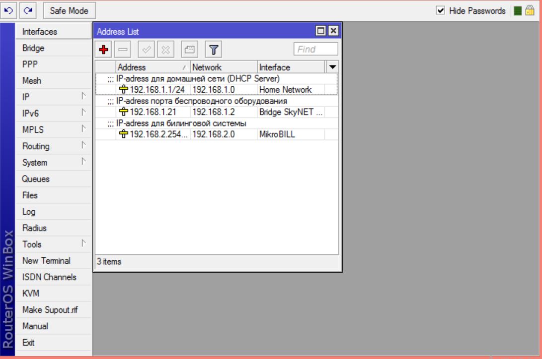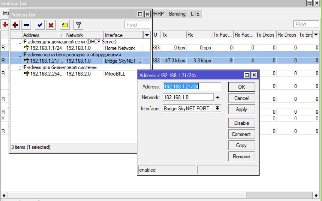 Xnection Posted November 5, 2014 Author Posted November 5, 2014 Понимаете я подключен в интерфейс № 5- Home Network(192.168.1.1/24)(Тут же поднят DHCP Server и раздает адреса в диапазоне 192.168.1.2-192.168.1.20 ) и пытаюсь получить попасть на оборудование подключенное в Бридж PPPoE Server 1 и PPPoE Server 2 имеют адрес 192.168.1.21/24 Вставить ник Quote