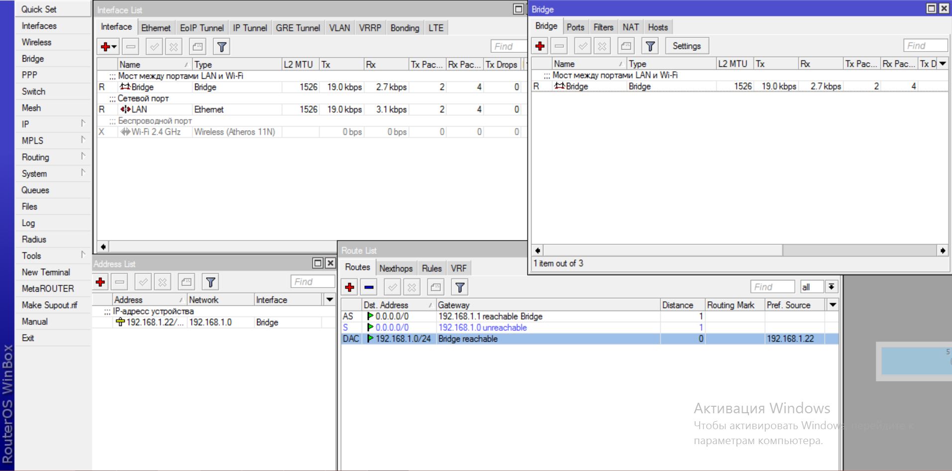 pandel Posted November 5, 2014 Posted November 5, 2014 (edited) Угу все верно. Затем ткните new terminal и пингуйте 192.168.1.22 Если не пойдет то route / add и добавляете dst adress 192.168.1.22 шлюзом указываете 192.168.1.21 Edited November 5, 2014 by pandel Вставить ник Quote