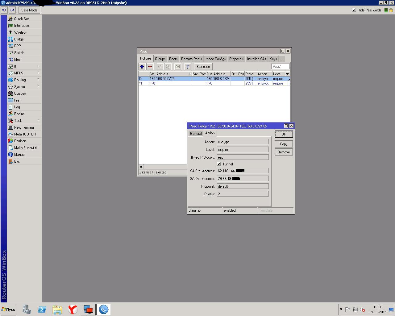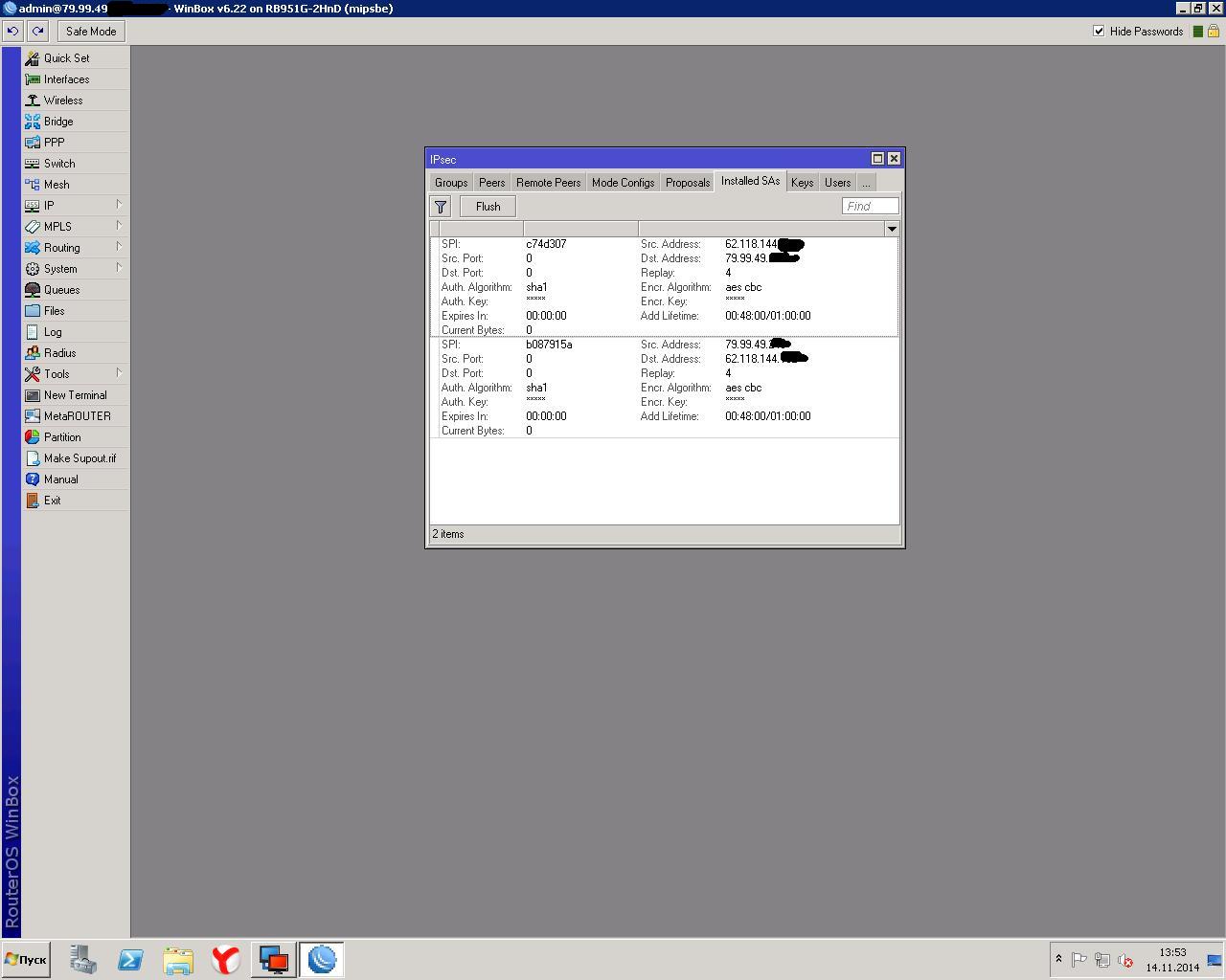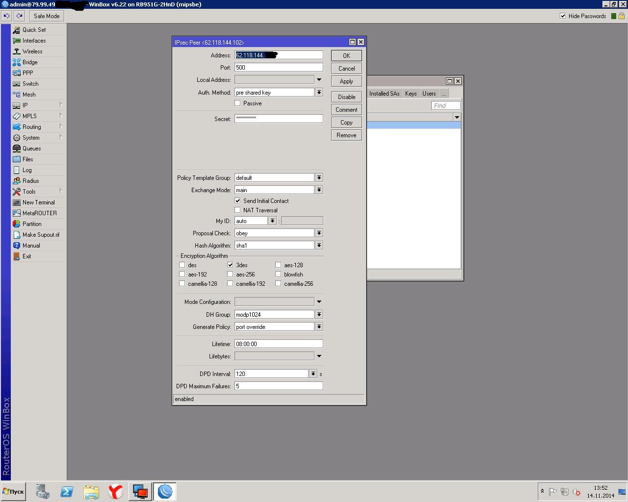 danilbal Posted November 14, 2014 Posted November 14, 2014 В свое время я эту проблему не порешал, отказался на этом участке от ipsec в пользу PPTP. Второй микротик для этого вовсе не обязателен:) Вставить ник Quote