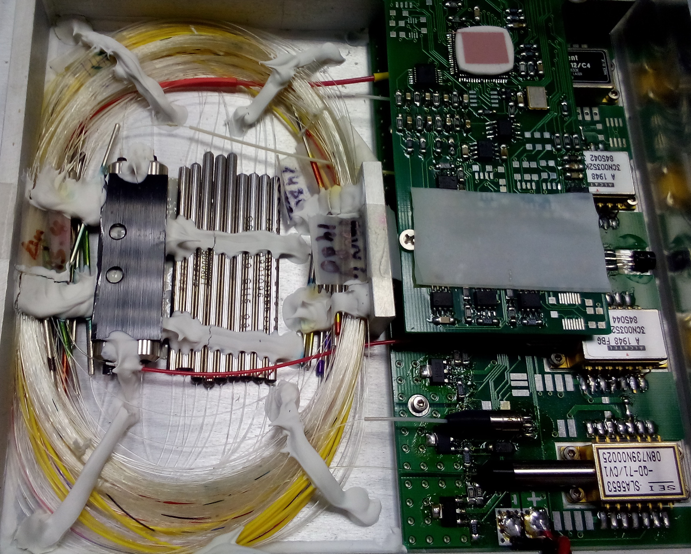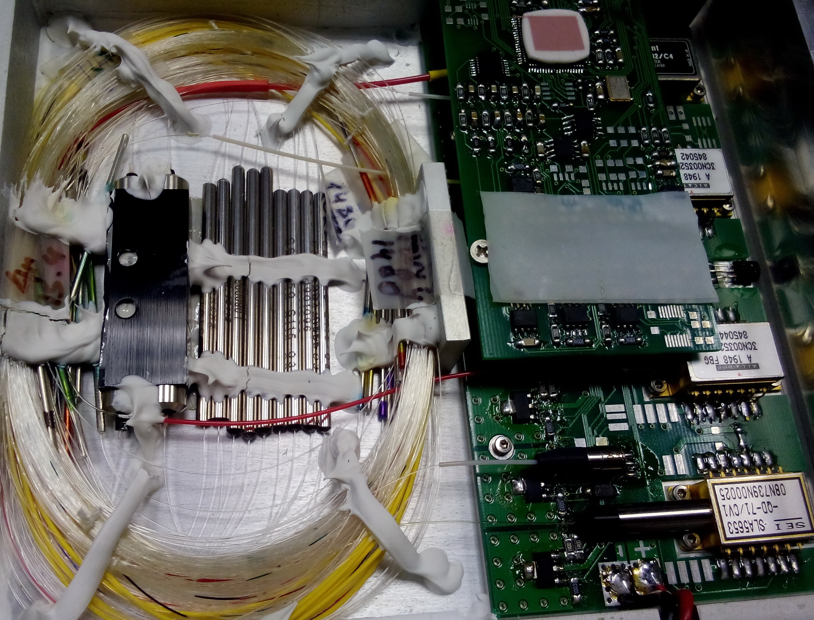 dIMbI4 Posted February 25, 2015 Posted February 25, 2015 Выложи фото своего- если залито не эпоксидкой - то можно пошуршать и нарисовать примерную схему. Тут сначала изолятор, сплитер измерения, потом накачка, эрбиевое волокно, сплиттер измерения, изолятор, потом поидее разветвляется на несколько веток и тоже измеряется сплиттером. Сварить никаких проблем, главное найти точку последнего контроля сигнала. Видимо китайские лохматые варианты отличаются тупо мощным выходом без контроля и обычным делителем. Вставить ник Quote