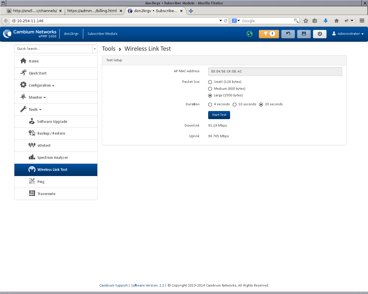 adron2 Posted November 18, 2014 Posted November 18, 2014 (edited) Я не поленился проверил. есть два CPE. на них линк на 51.414 kilometers. линк на 5 ггц и в 20 мгц полосы. Молодец, отлично, прошивка какая ? У меня напомню 2.3rc10.А можно скрин встроенного камбиум спидтеста ? Что мы делаем не так? Что я делаю не так, не подскажеш ? На линке присутствует около 20 мегабит живого трафика в данный момент. Что делаешь не так - не знаю. Мало данных. Нужны данные о расстоянии, скрины с вкладки performance. Это для начала... На свитче flow control случаем не включен? Да и прошивка 2.2! Я в соседней теме писал что в 2.3 есть глюки(пакеты бьются, дупы). Edited November 18, 2014 by adron2