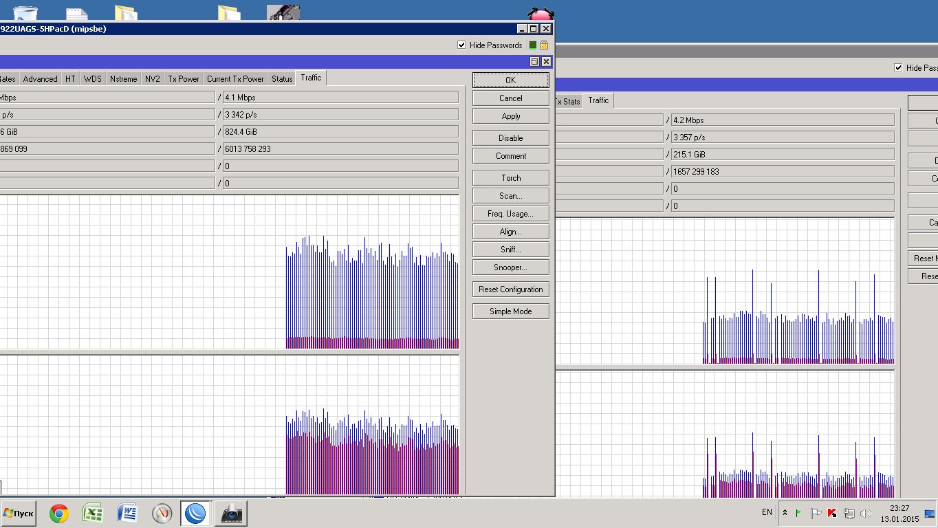 Saab95 Posted January 14, 2015 Posted January 14, 2015 Ну вот, только успокоился и снова та же песня. Из странностей- в момент замирания на порту МТ, к которому подключен мост, происходит скачек скорости и пакетов в 2 раза. А на самом мосту трафик ровный!!! Значит дело в RB2011??!! Есть мысли у кого нибудь? Такое происходит когда не совсем надежный канал до микротика, к которому вы через винбокс подключаетесь, например задержка высокая или сильно изменяется, скорость периодически падает, потери пакетов и т.п. Винбокс суммирует данные за время отсутствия связи и выпуливает на график по мере восстановления связи, а когда она потеряна появляются пропуски на графике. Подключитесь к устройству напрямую физически и посмотрите на изменения. Вставить ник Quote