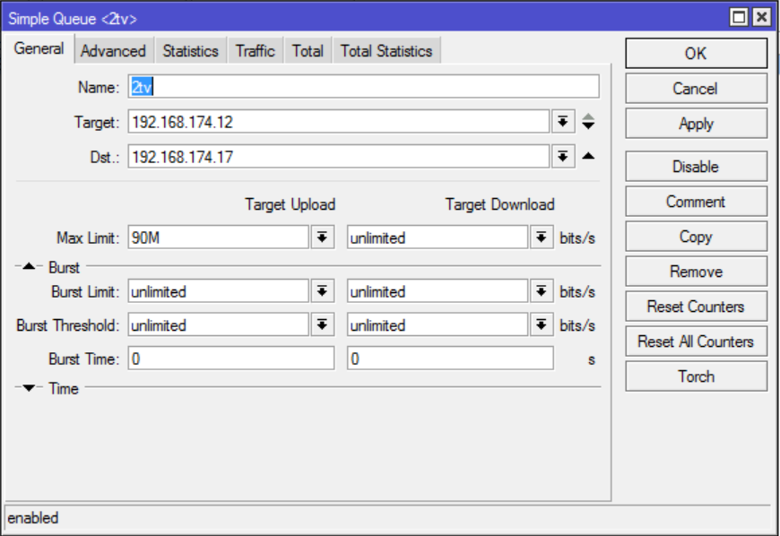 Морфеус68 Posted January 24, 2020 Posted January 24, 2020 (edited) Коллеги, подскажите нубу как зашейпить трафик на Mikrotik hAP AC2? Надо с одного порта свича на другой ограничить трафик с 1Гбит до 100Мбит... или по IP адресу... Вчера весь вечер убил - ни одна queue не работает! :( Например, вот так не работает: /queue simple add target=192.168.174.17 max-limit=100M/100M FastTrack отключён. Edited January 24, 2020 by Морфеус68 Вставить ник Quote